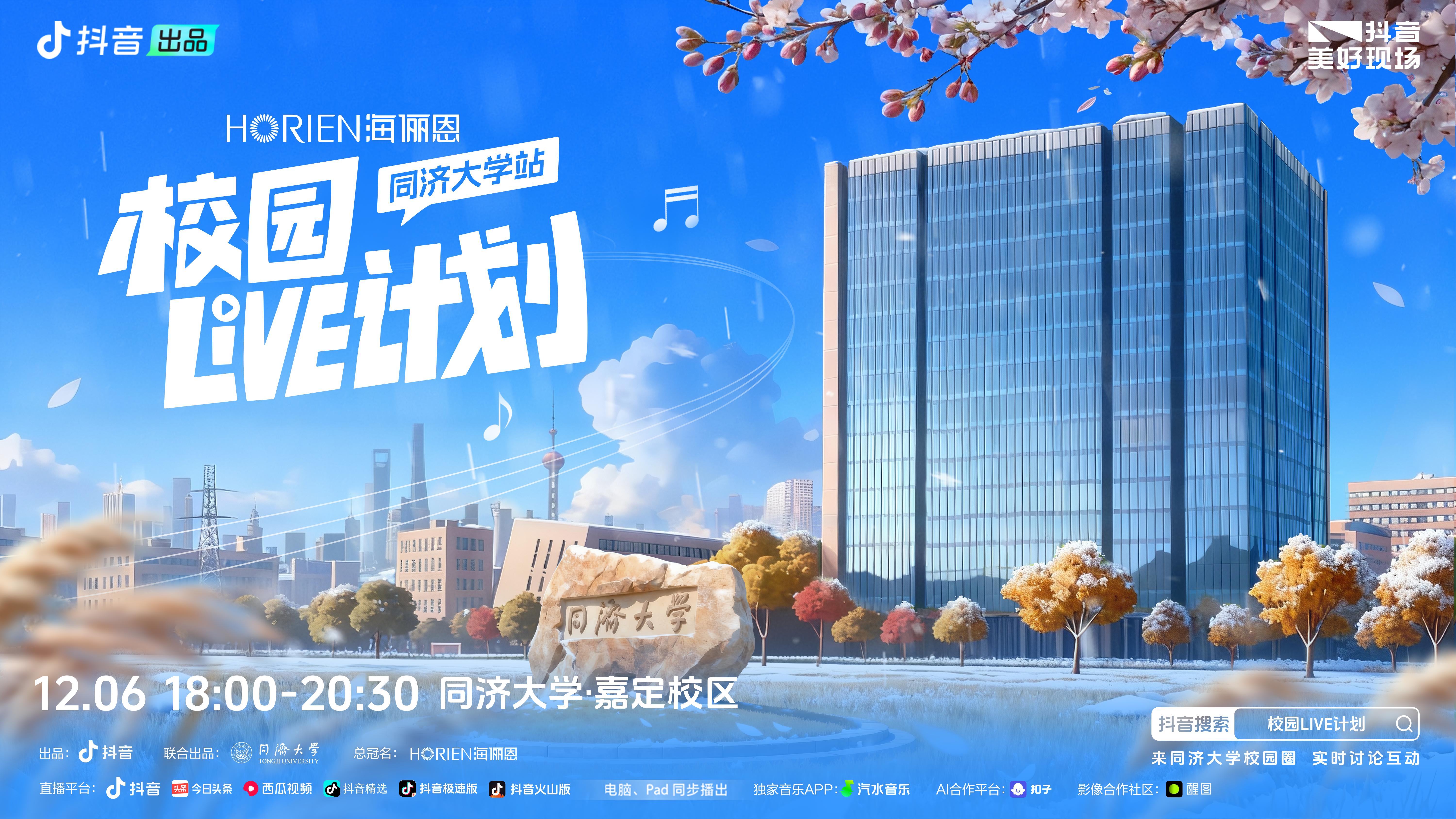 抖音校园LIVE计划·同济大学站 今晚18:00 见,青春声场热力开唱 梧桐叶落,铺成金色的诗行风声穿过...